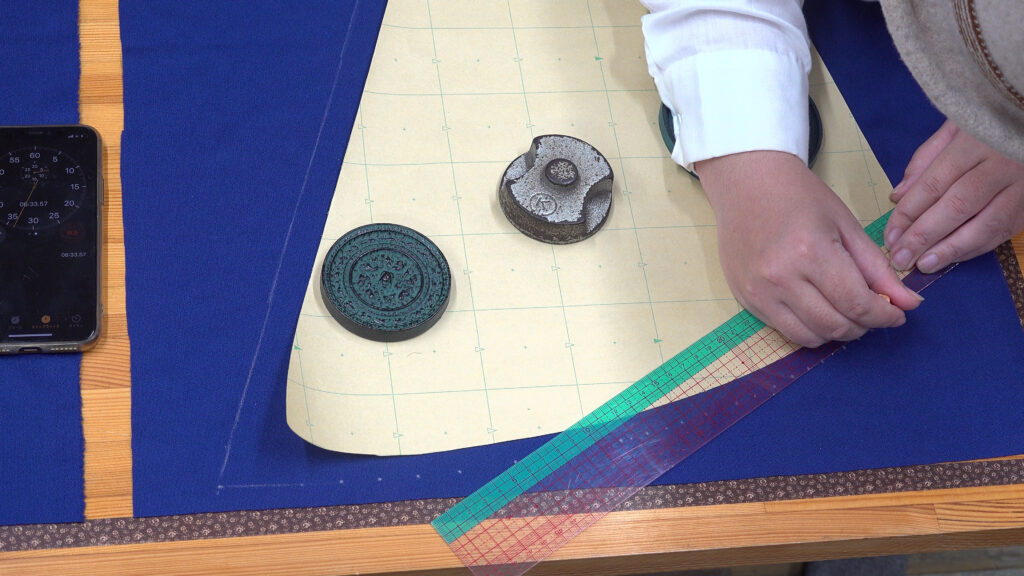 裁断は、輪裁ち。長い直線。大きなカーブ。