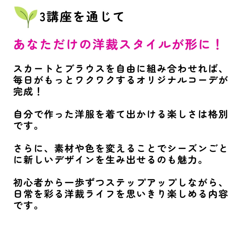 洋裁が自宅で学べる365回講座をはじめ、動画で洋裁が学べるサイトです。