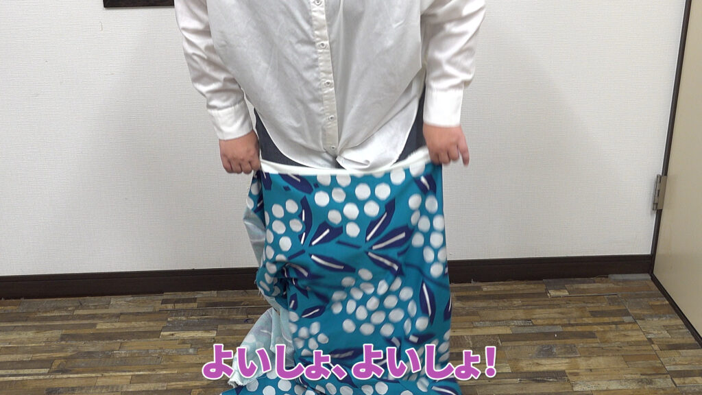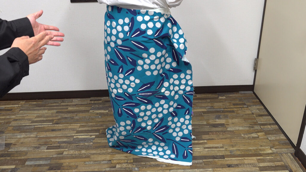 今回の動画に加え、お腹やお尻の補正を入れる必要はあるのですが、先ずはスカート幅と足さばきに必要なスカートの裾幅と着丈とのバランスを測りました。